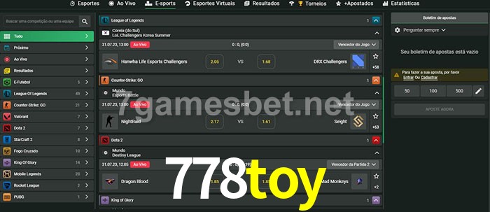 O 778toy oferece uma grande seleção de opções de apostas em e-sports com probabilidades competitivas